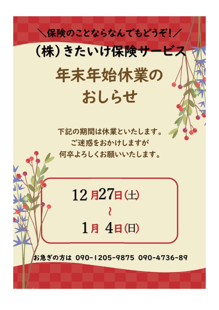 年末年始営営業日のお知らせ